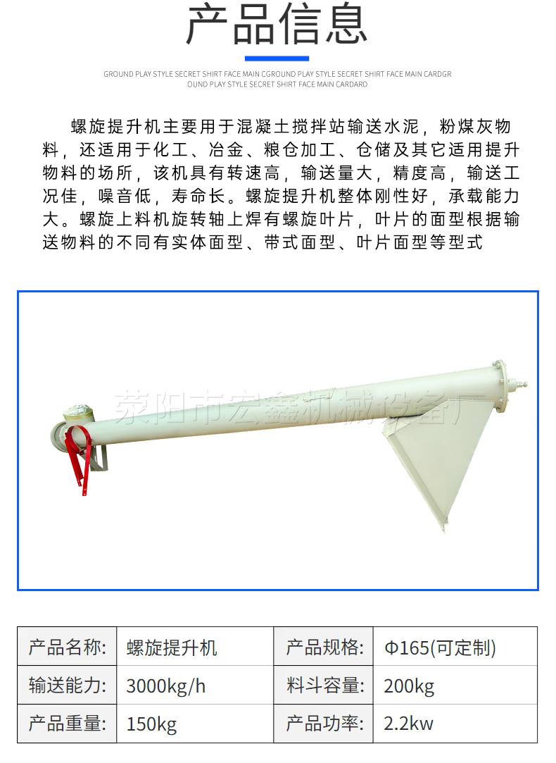宏鑫滎陽(yáng)宏鑫機(jī)械j設(shè)備廠-絞龍螺旋提升機(jī)